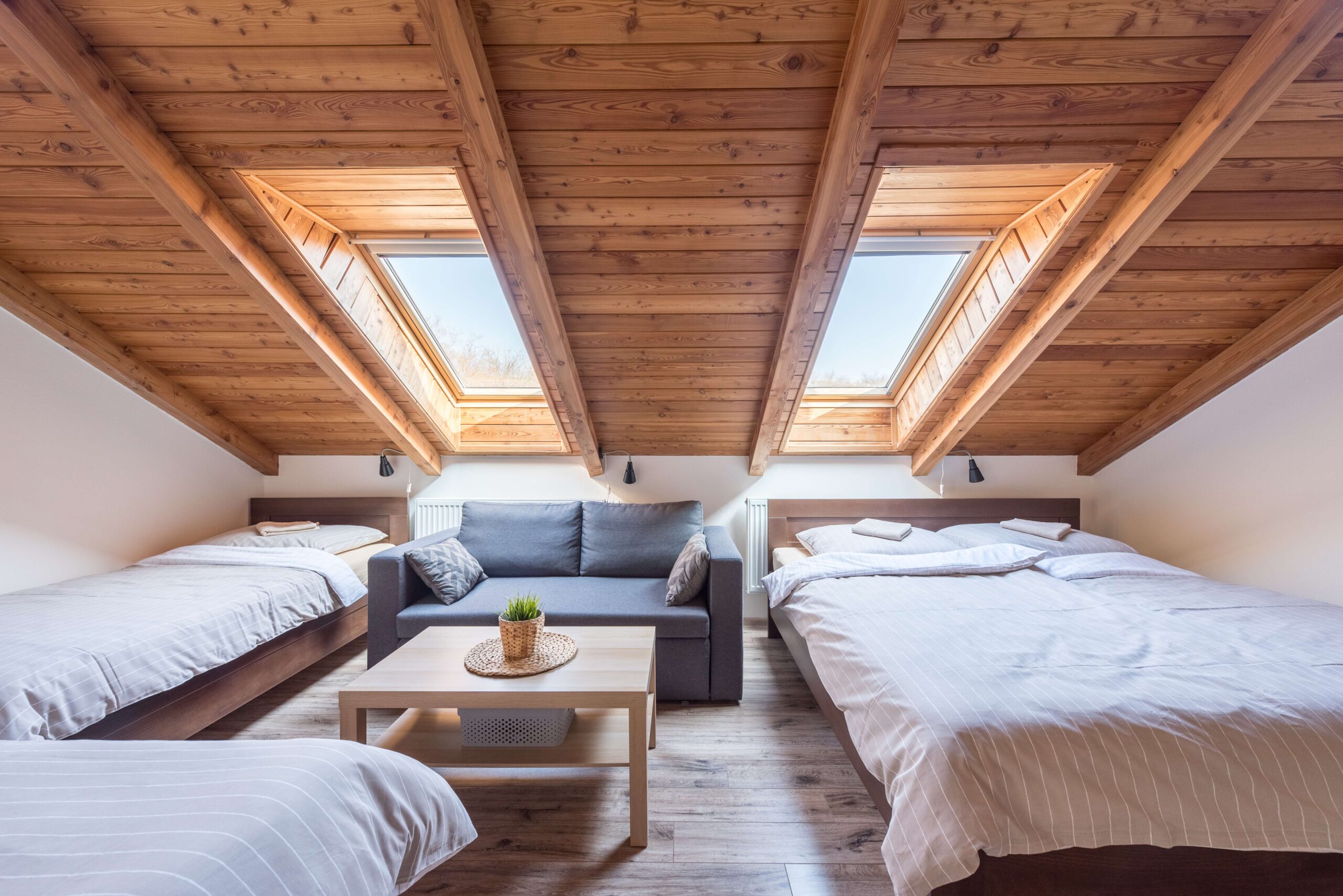 1x dvoulůžko, 2x jednolůžko, 2 osoby na rozkládací pohovce nebo přistýlce)